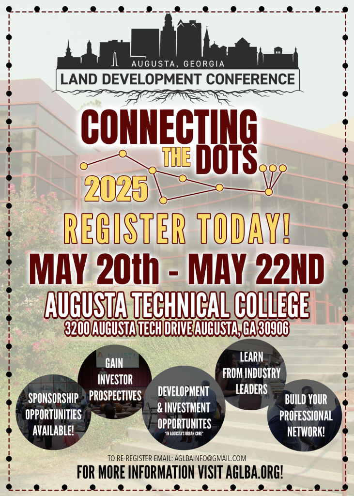 The Augusta, Georgia Land Development Conference equips developers, non-profits, investors, and businesses with essential insights for navigating real estate investment and development in Augusta-Richmond County. Featuring key speakers and panels from government agencies, local authorities, and industry leaders, this conference is your comprehensive guide to investing in Augusta’s burgeoning market. Join us at Augusta Technical College from May 20th to May 22nd for an exceptional lineup of speakers and unparalleled networking opportunities. Special thanks to Augusta Technical College and our sponsors for their invaluable support in making this conference possible.