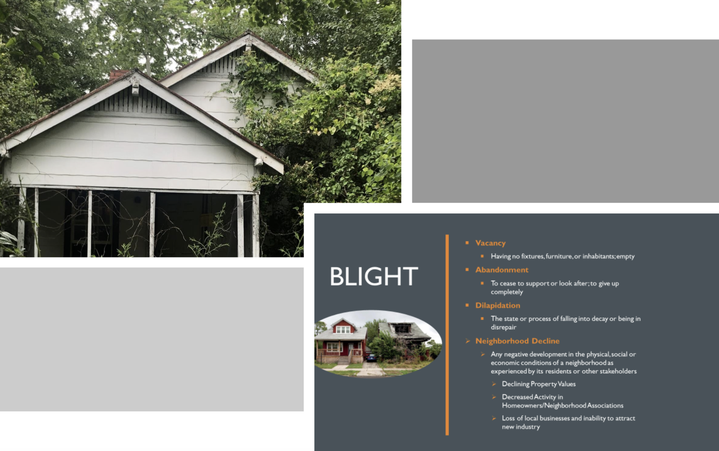 Neighborhood blight and the presence of vacant and abandoned properties have profound negative impacts on afflicted communities of all types – rural, urban, and suburban. Blighted properties decrease surrounding property values, erode the health of local housing markets, pose safety hazards, and reduce local tax revenue. Economic disinvestment and the withdrawal of industry increase unemployment and worker migration, which lead to vacancy and deterioration. The vacancies, in turn, reduce tax revenues further for local governments, which respond by reducing public services and functions such as code enforcement, making the area even less attractive and fueling even more population loss. As indicators of blight, studies have often examined the presence of vacant lots attracting crime, dumping, abandoned or dilapidated housing and commercial and rental properties owned by non-complying absentee landlords.